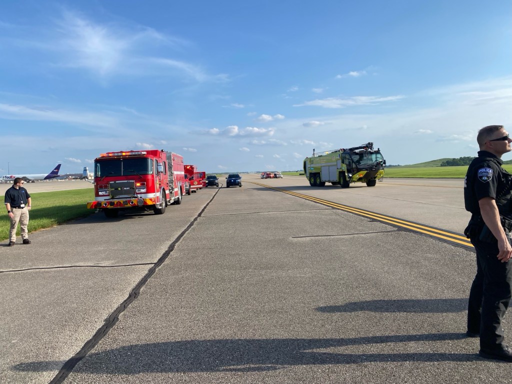 BREAKING – The Jamestown Comet Exclusive – approximately 6:18 PM this afternoon Frontier Airlines flight 1048 returning from Fort Lauderdale landed at the Cincinnati/Northern Kentucky International Airport, but was detained on the tarmac by authorities.